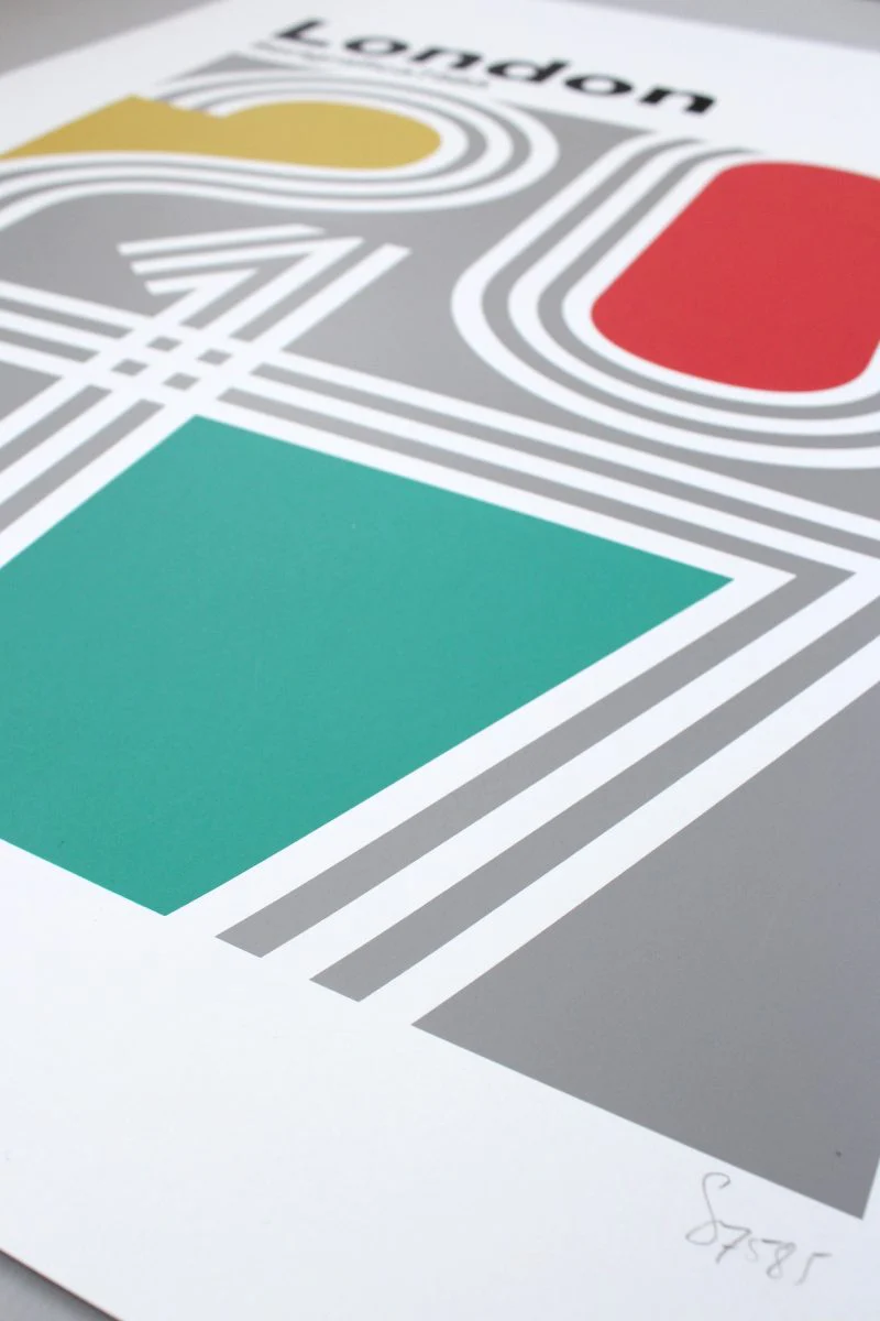 - This is a beautiful typographic London 5 colour silkscreen art print hand pulled on 310 gsm Southbank Smooth matte paper. Inspired by the work of Lance Wyman (Mexico68), the design carefully balances colour and geometry with a retro aesthetic.